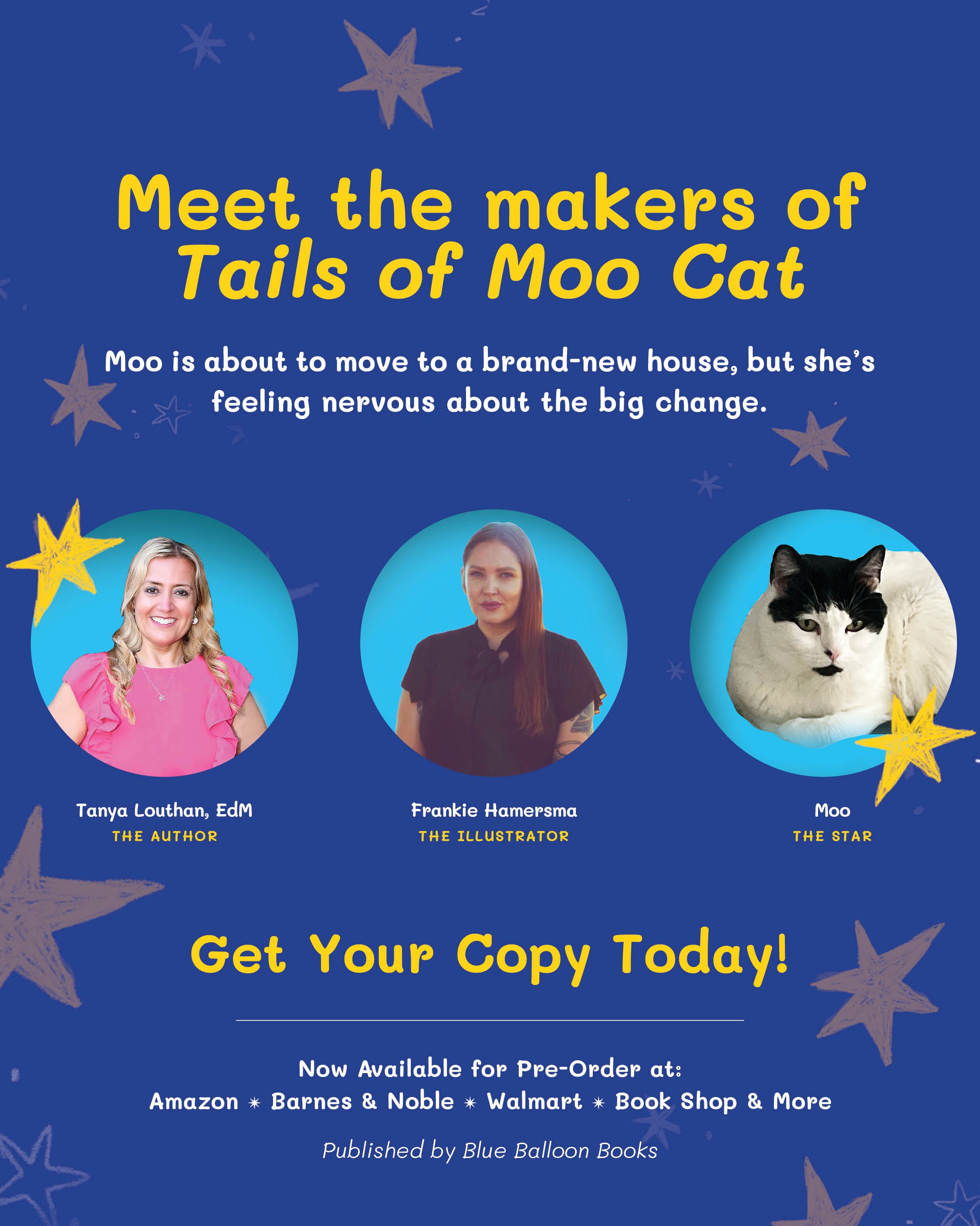 She recently teamed up with her cousin, Tanya Louthan, to make a children’s book called Tails of Moo Cat. Frankie illustrated the story of a kitty named Moo, facing her fears of moving to a new home. Tails of Moo Cat is currently available on Amazon, Barnes and Noble, Blue Balloon Books and other book retailers nationwide.